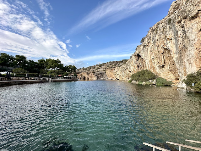 Lake Vouliagmeni is a thermal lake that stays warm all year around. During our visit it was 24C. The water is brackish as the salinity is reduced due to underwater freshwater springs